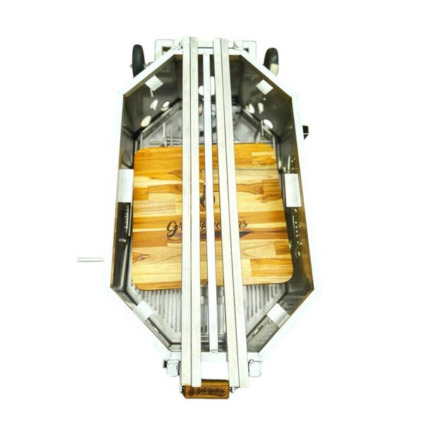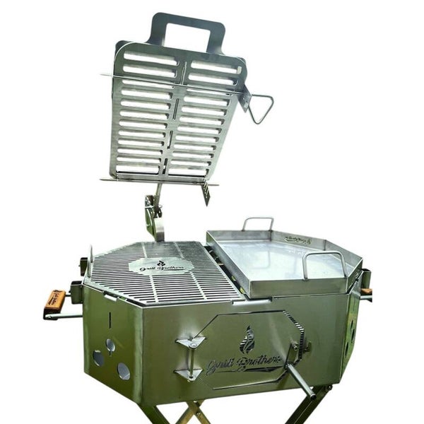 A grill inspired by Argentinian and Uruguayan cooking methods, ideal for all lovers of fire and embers. A versatile, multi-purpose, and portable grill.